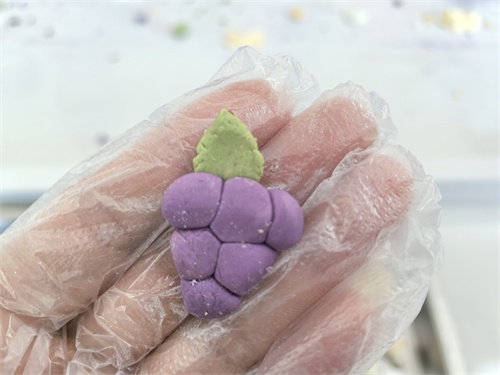 最热闹的要数搓圆子环节。小手掌心相对,搓呀搓,揉呀揉,圆溜溜的小团子从指缝间蹦出来。“老师,看,这是我捏的葡萄,像不像真的呀?”“老师老师,我捏的爱心是混色的哦!”……同学们脑洞大开,捏出了创意,捏出了智慧。