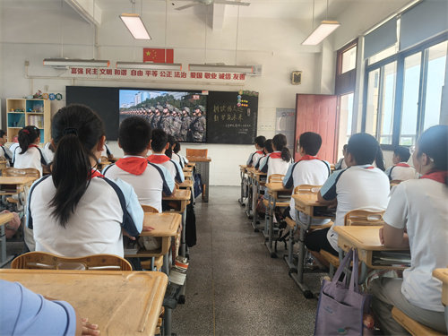 典礼上,朱校长发表了题为《铭记历史赓续血脉,以少年之我筑强国之路》的热情洋溢的致辞。她从80周年纪念日切入,将校园的桂花香与天安门的礼炮声相联系,将崭新的课本与阅兵的钢铁洪流相呼应,为师生们带来了一场跨越时空的对话。朱校长在讲话中特别强调,同学们也是这场盛大典礼的“小主角”,并鼓励大家争做历史的“小传承者”、未来的“小创造者”和今天的“小主人”。